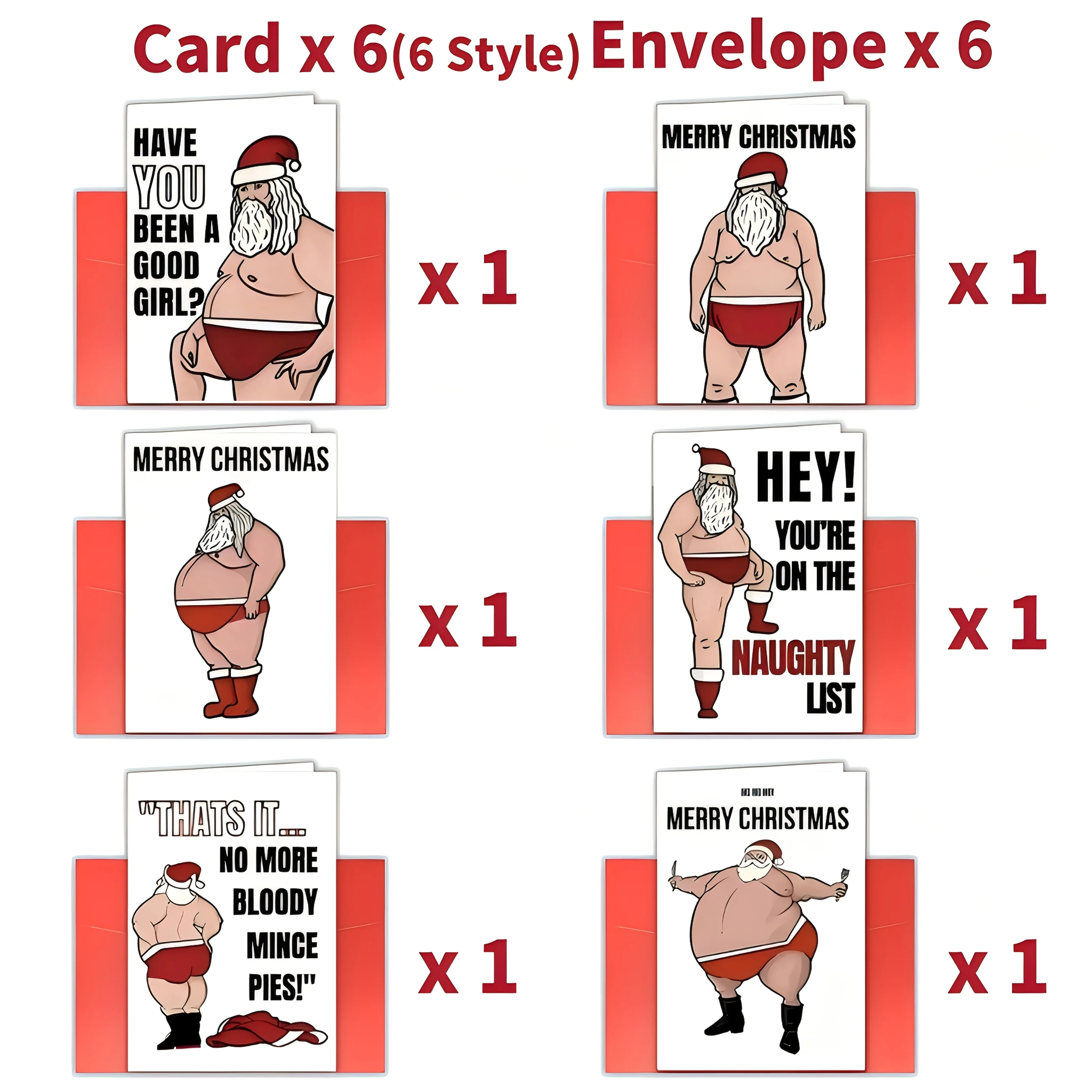 12pcs Naughty Santa Claus Christmas Cards with Envelopes