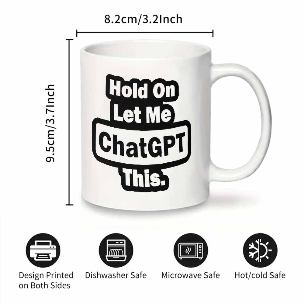 Perfect for the perpetually curious and digitally dependent, this mug serves up a dose of humour with every sip. Featuring a cheeky nod to our AI-obsessed era, it's the ideal companion for coffee breaks, brainstorming sessions, or those moments when you need to consult the internet before making any decision. Whether you're gifting it to a tech enthusiast or treating yourself, this witty ceramic vessel celebrates the modern tendency to outsource our thinking—one caffeinated quip at a time.